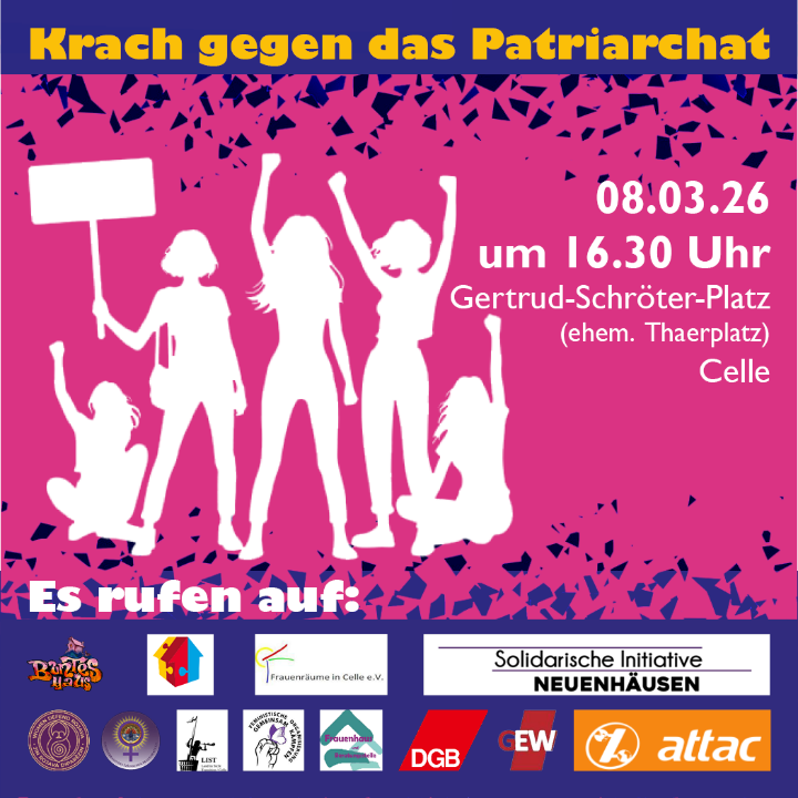 Am 08.März ist Internationaler Frauentag. Sein Ursprung reicht über 100 Jahre zurück und wird heute in zahlreichen Ländern teilweise als gesetzlicher Feiertag begangen. Und die GEW Celle ist auch in diesem Jahr dabei!